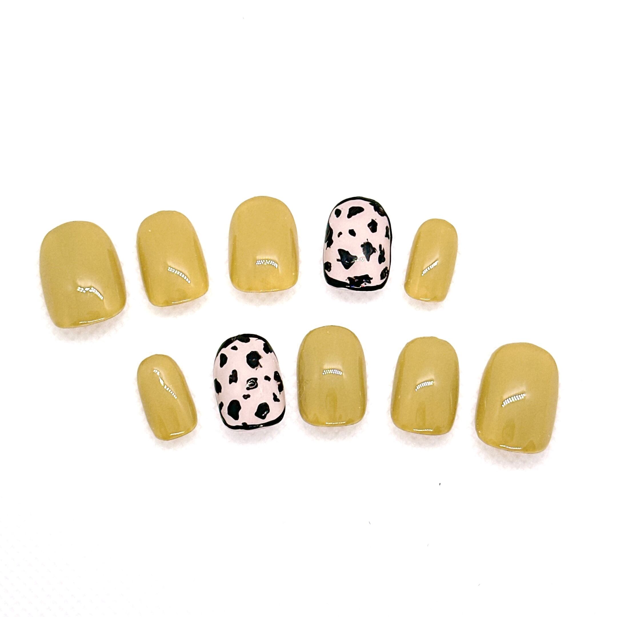 ランダムなカウ柄がサロンネイルでも人気のデザインです.:*